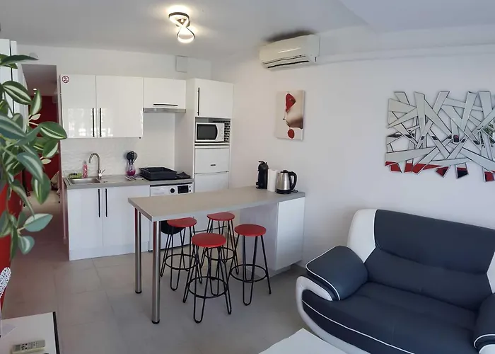 Das 25 m^2 große Apartment Cap D'Agde Port Nature liegt im Stadtviertel FKK-Dorf, in rund 900 Meter Entfernung vom Strand Plage du Mole. Das 1-Zimmer-Apartment bietet Ausblicke auf den Garten.